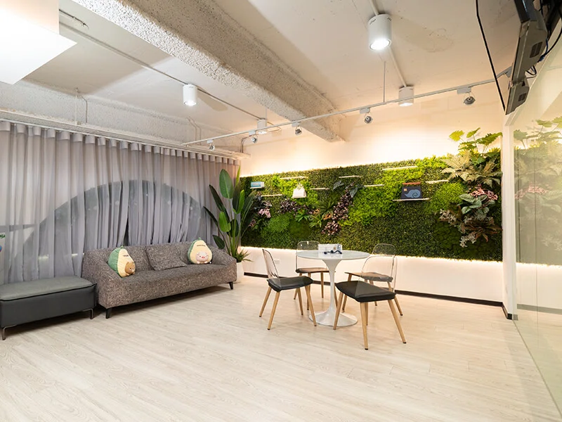 寬敞候診區、綠意植栽、柔和燈光與輕音樂,營造放鬆氛圍。